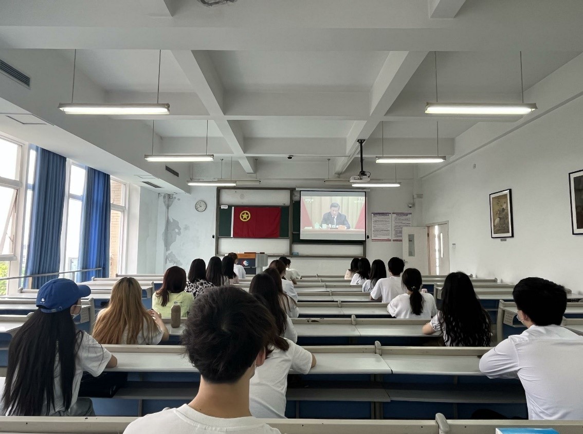 2022年5月10上午十点,庆祝中国共产主义青年团成立100周年大会在人民大会堂隆重举行,中共中央总书记、国家主席、中央军委主席习近平出席大会并发表重要讲话。9728太阳集团分团委学生会组织团干、团员、学生骨干代表30余人在9728太阳集团502教室集中收看了大会直播,认真学习领会习近平总书记重要讲话精神。