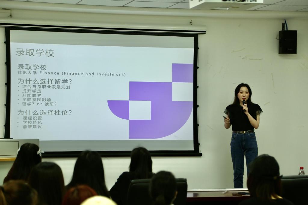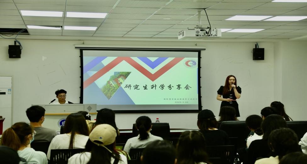 2022年5月20日星期五下午14:00,各位报名参加考研分享会的同学按时抵达北十发展中心002会议室,由主持人对本次活动进行简单介绍后,分享人依次上台发言,由李佳瑞和胡旖旎学姐对国外留学申请做主要介绍,分别讲述了自己本科期间的学习和实习经历,并给学弟学妹们提出了一些切实可行的留学申请方法;中途穿插了Q&A和抽奖环节,同学们都积极主动地配合。