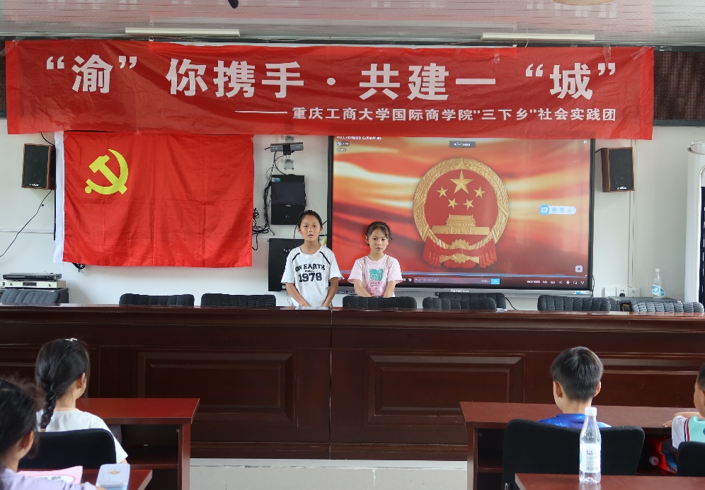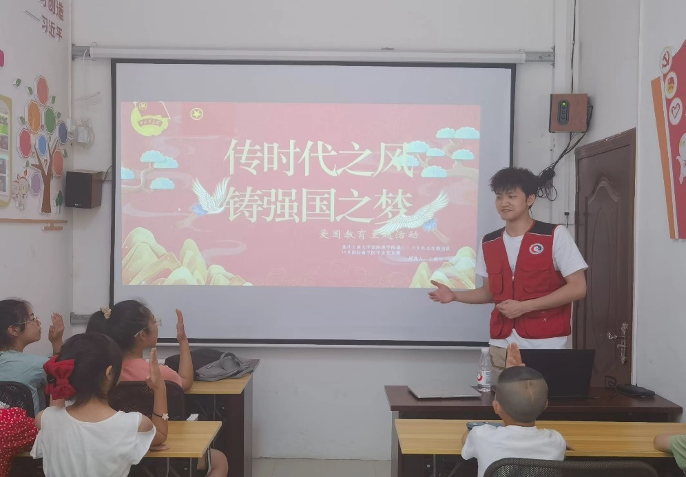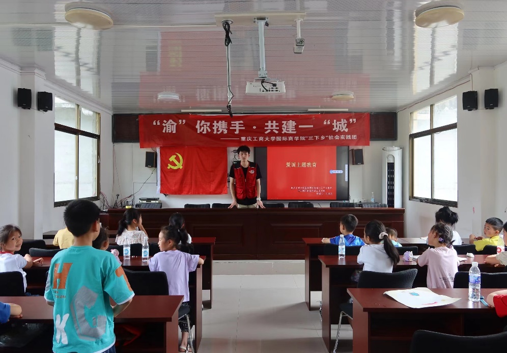 为弘扬民族精神,赓续红色血脉,培养学生的爱国主义情怀,增强民族自豪感和荣誉感,2023年7月10日,9728太阳集团暑期“三下乡”社会实践团在城口县咸宜村青少年之家向留守儿童们开展了一场别开生面的爱国主题教育活动。