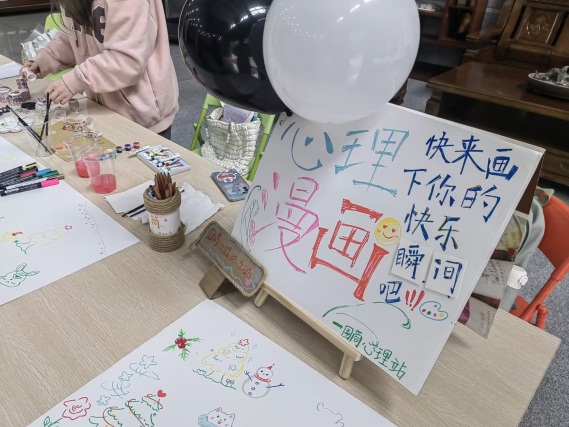 大赛分为两个阶段,第一阶段为网络投稿阶段,2023年11月22日——11月30日共计收到全校学生的作品245幅,通过国商心理委员群内投票选出最受欢迎的10幅优秀作品。第二阶段为线下活动阶段,2023年12月13日在国商大厅对10幅优秀作品进行展出,并同期开展现场心理涂鸦活动。此次活动得到了同学们的广泛参与,取得了良好的效果。